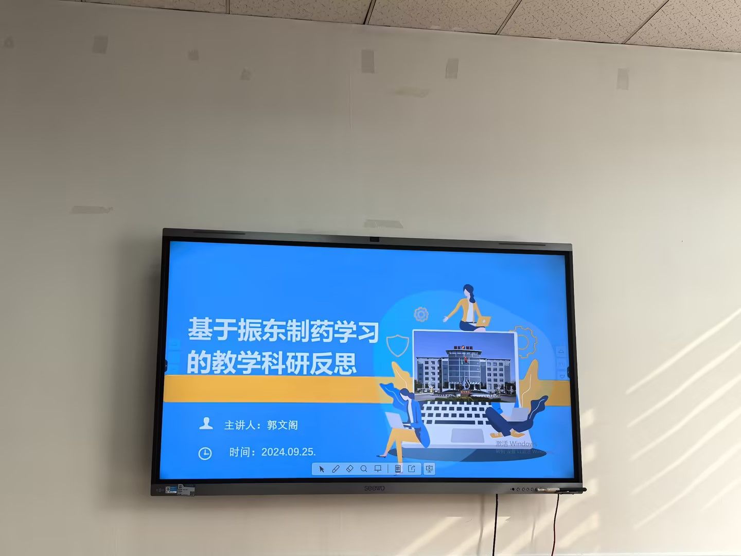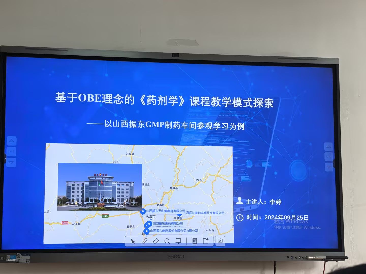 学术交流环节,乐天使药剂学教研室李婷和药物化学教研室郭文阁分别做了题为《基于OBE理念的药剂学课程教学模式探索—以山西振东GMP制药车间参观学习为例》和《基于振东制药学习的教学科研反思》的报告,分享了他们在振东制药股份有限公司交流学习的收获和体会。
