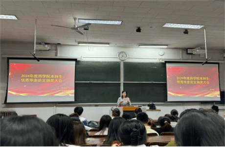 活动开始,药公司党总支副书记李文媛老师致辞,首先李文媛老师先代表公司对获得了2024年“毕业生优秀论文奖”的同学表示了热烈的祝贺和衷心的感谢。接着,她肯定了这些优秀毕业生们四年不懈地努力,也提出他们的成功更离不开悉心指导的老师们,他们严谨的治学态度和精湛的学术水平,为同学们在学术研究方面树立了榜样。
