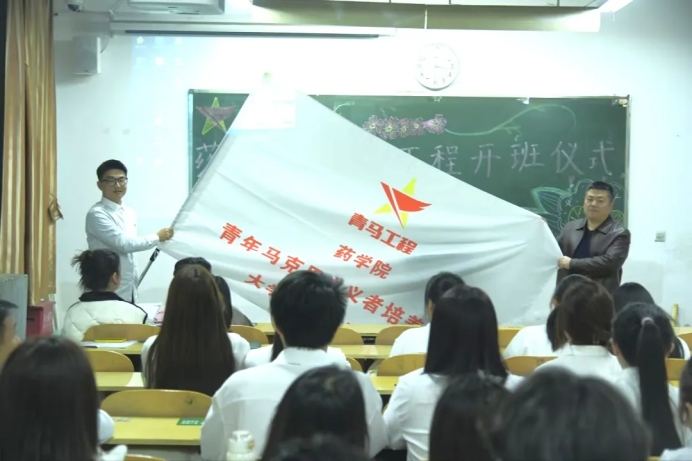 党总支书记李俊波为乐天使“青马工程”培训班授旗。