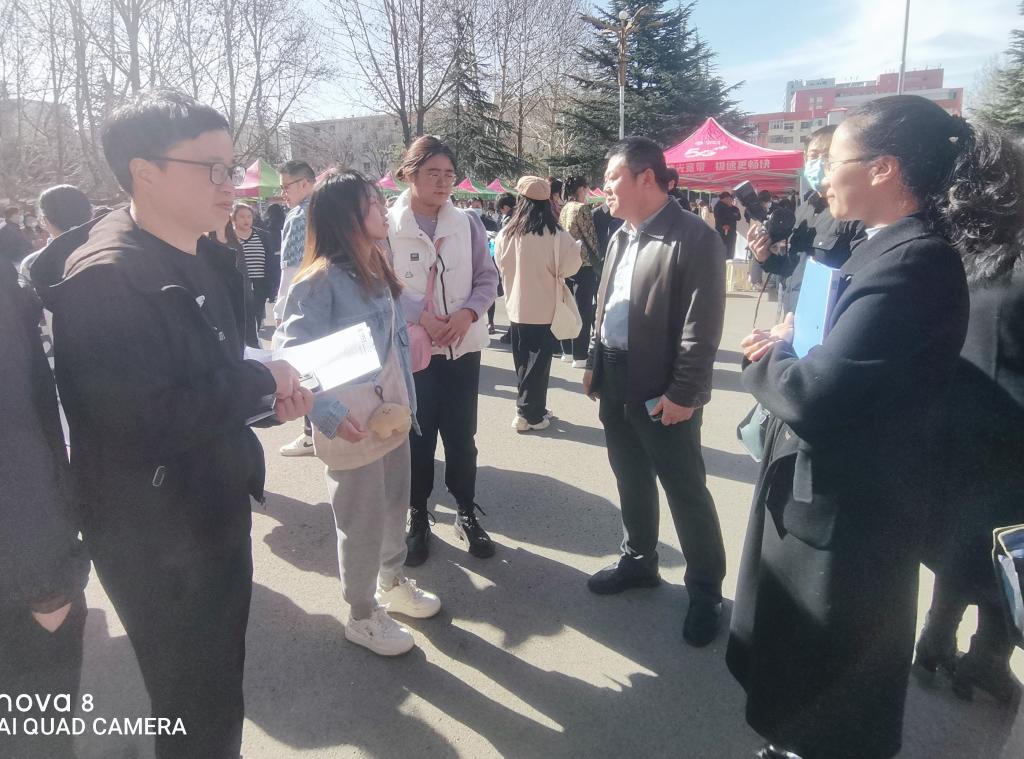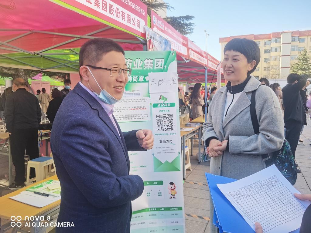 上午9时,药学系党政负责人、2023届毕业班辅导员马红郭文阁深入校招现场,与企业代表主动交流,了解用人需求,并积极向用人单位推荐毕业生。