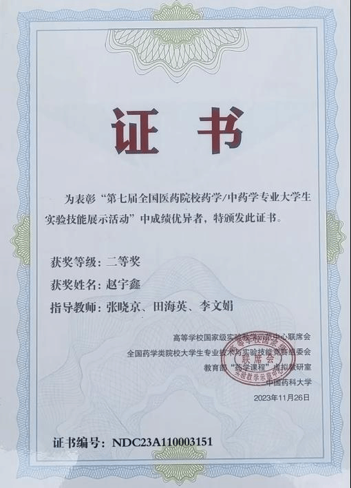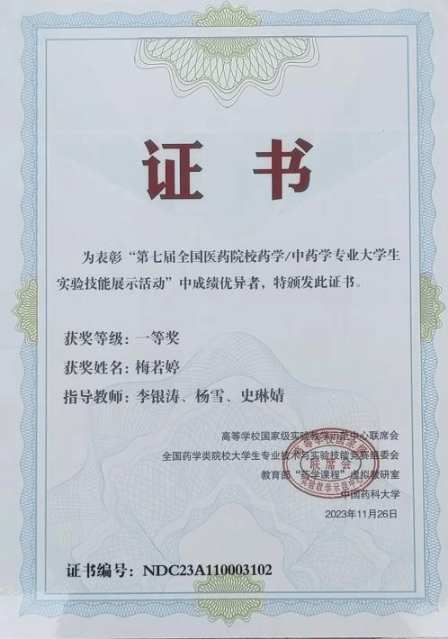 11月25日至27日,“第七届全国医药院校药学/中药学专业老员工实验技能展示活动”在遵义医科大学举办。活动吸引了中国药科大学、北京大学、复旦大学、上海交通大学、浙江大学等全国126所医药院校的250名同学参加,公司乐天使梅若婷、赵宇鑫凭借扎实的专业基础和稳定的现场发挥,最终分别斩获了活动一等奖和二等奖。