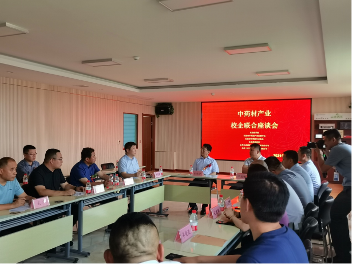 宋晓亮教授介绍了公司的红色底蕴、办学情况、科研状况等,围绕双方的契合点,重点介绍了中药学专业人才培养、药学学科人才优势等相关情况。他指出双方可以通过共建中医药人才培养基地、建立中药材产学研基地、建立校企联合实验室、设立博士工作站等方式,开展更高层次、更广泛领域的合作,开创协同促进、共同发展的合作局面,形成“工学结合、校企合作、产教融合”创新模式。