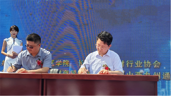 座谈会后,宋晓亮教授代表公司与山西上党中药材商贸城有限公司签署了校企合作框架协议,并为fun88乐天使实践教学基地揭牌。上党中药材商贸有限公司总经理刘慧、山西九州通医药有限公司董事长王亚雄、山西振东道地药材开发有限公司总经理张建峰等入驻商贸城的企业代表参加了座谈会和揭牌仪式。