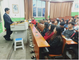 2019年4月15日下午,宋晓亮经理在北区6教与药学1801班同学举行见面会。药学系党总支副书记王淑荣、药学系主任宋丽华、18级辅导员王添和药学1801班班导师职国娟参加见面会。