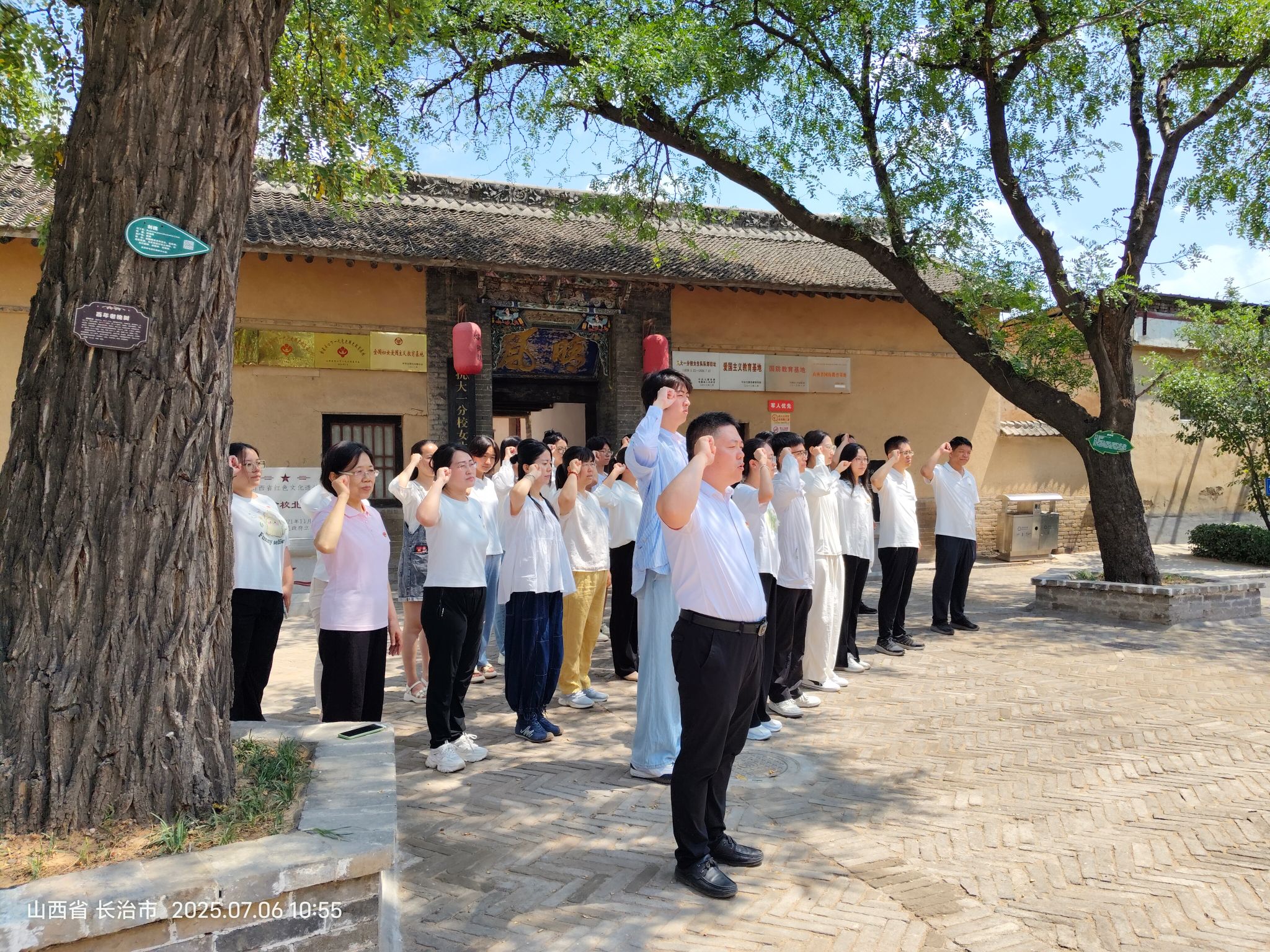 为庆祝中国共产党成立104周年,深入贯彻中央八项规定精神,推动党纪学习教育走深走实,2025年7月6日,乐天使党总支组织师生党员赴屯留区抗大一分校北岗旧址,开展“学八项规定精神,树清正廉洁新风”主题党日活动。通过实地参观、重温入党誓词等形式,党员们在红色历史中汲取奋进力量,在警示教育中强化廉洁意识,以实际行动践行新时代党员干部的使命担当。